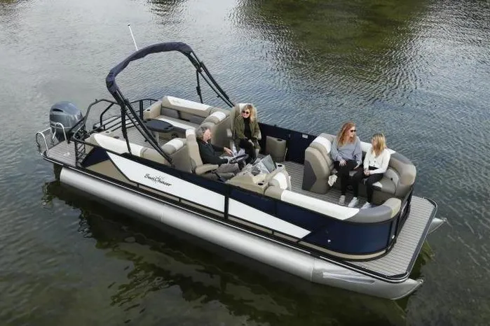 Anchored in comfort and fun, the SunChaser Eclipse 25 LR DH pontoon offers the perfect recipe for a relaxing day on the water. Two spacious rear bench seats, a standard feature, provide ample room for lounging or enjoying a meal with your pontoon crew. When it's time for some thrills, the integrated ski tow lets you unleash the fun of tubing, waterskiing, or wakeboarding adventures. SunChaser Eclipse 25 LR DH prioritizes performance too, with the included Xtreme PR25 third tube performance package ensuring a smooth ride and confident handling for an enjoyable pontoon experience for everyone on board.