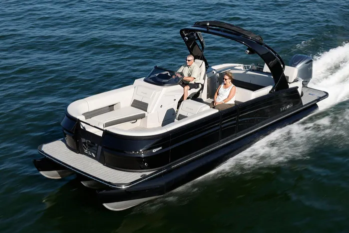 The G5 DLZ by Sylvan Pontoons redefines luxury in pontoon boating with its thoughtful design and premium features. Its versatile rear flip-back seating smoothly converts from a spacious 4-person dining area to an elegant rear-facing lounge. Equipped with a deluxe helm station, LED interior lighting, and sumptuous upholstery, the G5 DLZ delivers unmatched comfort and sophistication on the water.